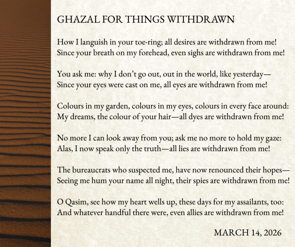 O Qasim, how my heart wells up, these days for my assailants, too: